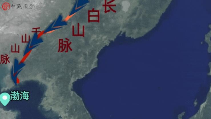 雾灵山往北生出承德的风山,风山生发辽宁的虎山;虎山往北又生两支:一支为大兴安岭,另一支为长白山山脉。