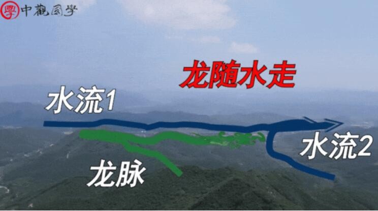 在地理学中,把起伏变化的山脉称为龙脉。龙脉的走向是有规律的,山两边水流的方向就是龙脉的走向,所以称为龙随水走。