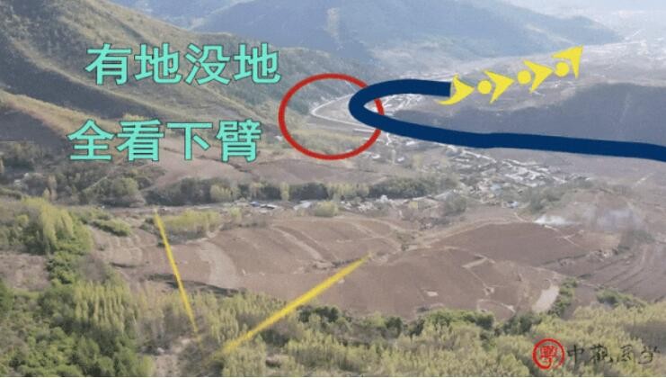 该地自祖山一路顿跌行龙而来,左右随龙水发源甚远,行至尽头,左右随龙水交汇脚下,汇聚之后,朝正前而去,行至水口出,左右水口砂交汇转弯流出,站在穴前,不见水出,在地理学上称此为水口关拦。