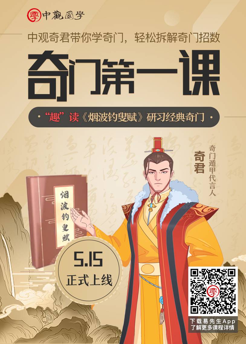 《奇门第一课》将于5月15日(本周五)正式在易先生App上线!关注下方海报,欢迎大家扫码下载易先生App,了解更多课程详情!