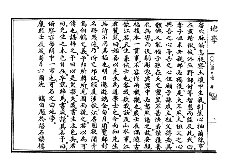 沈镐,字师昌,号新周,出生于明清鼎革年代(1649—1726),今安徽省望江县沈冲乡嘉滨老屋。以博学鸿儒而赢得康熙朝进士功名,曾出任四川省屏山县知县。“其禀性潇洒,视富贵如浮云。为时不久,即弃官归隐林泉,著书立说,遗稿累累,卷帙浩繁。以《六圃地学》、《四民便用字韵》最为士林所称颂。”其《地学》一书,为风水学峦头方面重要著作之一。