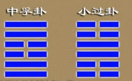 第四组为:中孚卦和小过卦,中孚卦是易经六十四卦第61卦,小过卦为62卦。风泽中孚,下兑上巽,六爻全变后为小过卦,雷山小过,震下艮上。中孚卦代表着诚信立身,卦形外实内虚,比喻心中的诚信,诚信是我们立身处世的根本。雷山小过代表的不是小的过失,而是小有稍有超越和过度但无妨,有难得糊涂的寓意,但切忌好高鹜远,务实才会大吉大利。