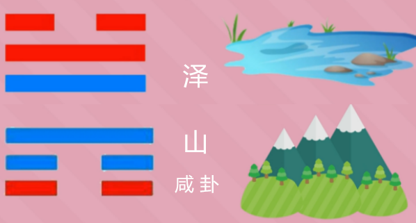 艮为山,兑为泽,泽山咸,艮卦与兑卦就构成了泽山咸卦,咸卦是什么意思呢?