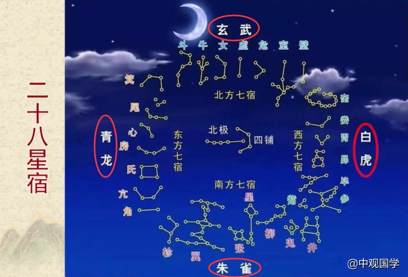 有一定国学基础的人一定听说过古天文知识、二十八星宿。我们肉眼看到的满天繁星,古人把它分成了二十八组,叫二十八星宿,又根据东南西北四个方位,每个方位又有七组星宿,分别是青龙、白虎、朱雀、玄武。