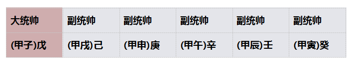 看了以下表格你就明白了,括号里的就是遁甲,是统帅,括号里的六甲分别率领:戊己庚辛壬癸。