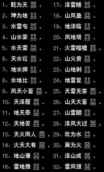 首先,我们需要知道每一个卦都是由两个八纯卦组成的,如: