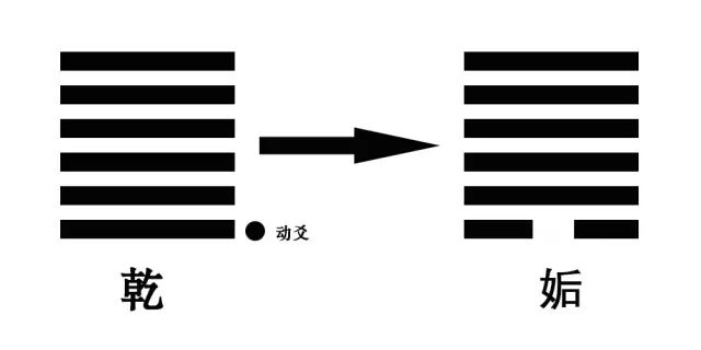 以乾卦为例,初九爻由阳变阴,则整个卦变为天风姤卦。