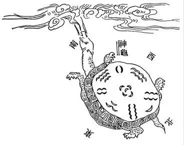 洛书古称龟书.相传,大禹时,洛阳西洛宁县洛河中浮出神龟,背驮"洛书",献给大禹。