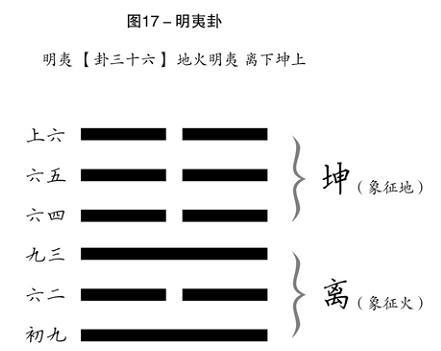 明夷卦上坤下离,地火明夷,卦象表现的是太阳渐渐沦入地平线,光明渐渐减灭的样子。郭璞也由此卦看出,这世道要不太平了。