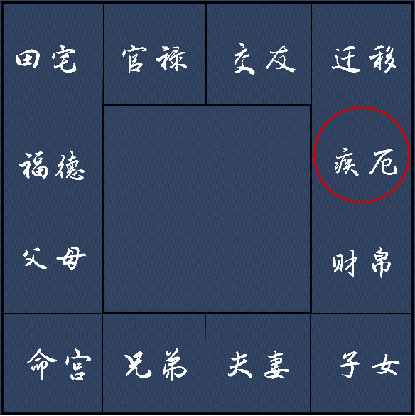 疾厄宫,属于紫微斗数十二宫之一。有关疾厄宫的关键词为疾病,灾厄、健康、体质、情绪、身材、办公地点等等。这说明,在某种意义上,疾厄宫的确可以反映人们的健康状态。
