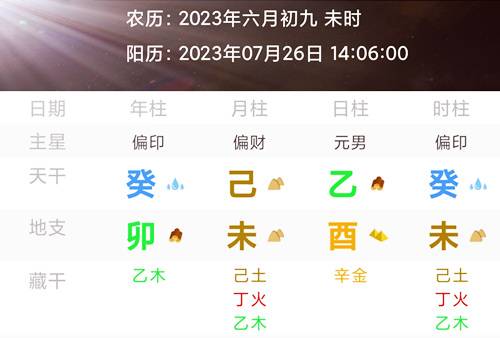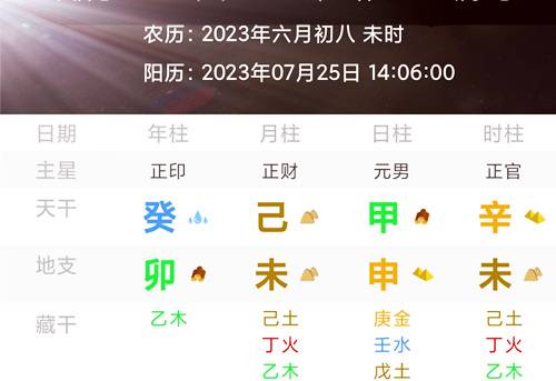 其次7月25号这这一天日子也不错,卯未相合,年支和日支为“卯申”暗合,“暗合”是指地支的藏干相合,如卯木藏“乙木”,申金藏“庚壬戊”,藏干中“乙庚”合,所以称为“暗合”。