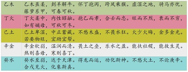 五阴干为“乙丁己辛癸”,《滴天髓》对其特性描述如下: