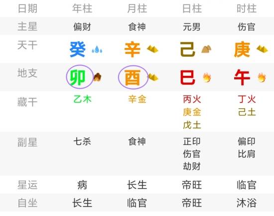 八字地支中有卯木和酉金的朋友,出行都需要多多注意,开车注意安全;用刀具或金属注意不要受伤;尽量不要参加风险高的运动,如攀岩,爬山,拳击等对抗性强的运动。