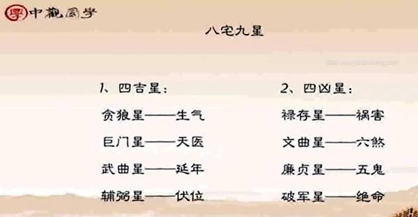 说八宅就离不开九星,九星分为四吉星和四凶星: