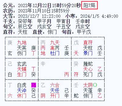 奇门局中分为阴阳两种局,冬至起为阳局,夏至开始为阴局。