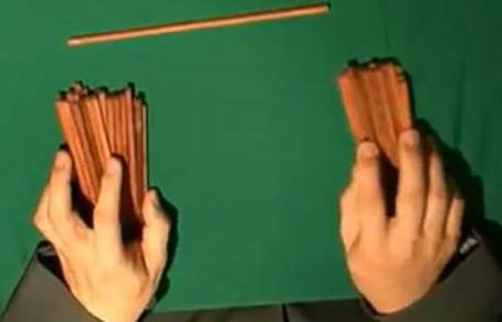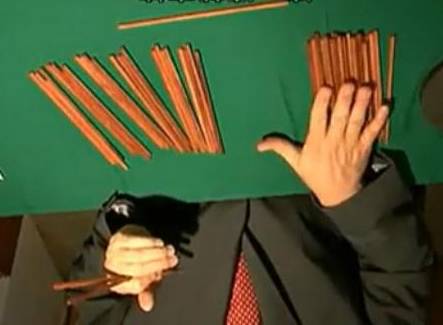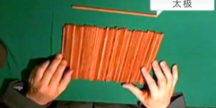第2步:把剩下的四十九根竹签任意一分为二,这个动作不需要什么讲究,强调的就是随心不刻意。