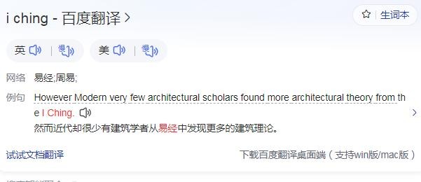 而近些年来,易经被直接音译为:I CHING,我们在翻译软件里,输入易经英文翻译直接音译了,易经的译名也不断变化着,正好符合易经智慧的特征。