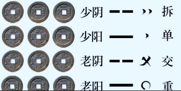 易经是一组由64个卦象符号构成的整体,每一卦由留个阴阳符号构成,每一符号称之为“爻”,每一个卦象就称为“六爻”。六爻占卜也称为“铜钱卦”,由三枚铜钱为工具完成占卜,铜钱的“满文面”代表阳爻,背面“汉字面”代表阴爻。