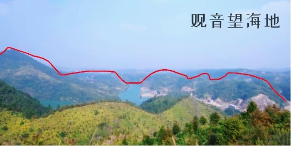 观音望海,是因为位置高,在山顶,整座山外形像人形,正前方看到层层峰峦叠嶂,犹如水之波浪,故喝形为观音望海。