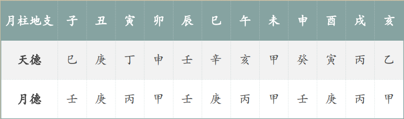 也就是看我们的“出生月份”,凡是四柱年月日时上见到的都属于天德贵人。