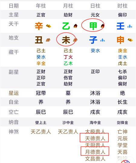 同样看我们的“出生月份”,凡是四柱年月日时上见到的都属于月德贵人。