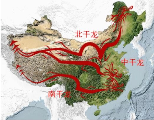 *古代堪舆家以长江、黄河为界,将中华山脉地势分别三大部分,称为三大干龙,即北条干龙、中条干龙、南条干龙。