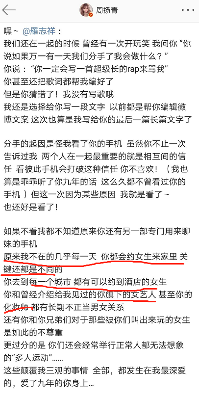 随后罗志祥也微博发表态度,承认分手,并表示了道歉。