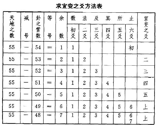 “大衍之数五十,其用四十有九。分而为二以象两,挂一以象三, 揲之以四以象四时,归奇于扐以象闰,五岁再闰,故再扐而后挂。天一地二,天三地四,天五地六,天七地八,天九地十。天数五,地数五,五位相得而各有合。天数二十有五,地数三十,凡天地之数五十有五。此所以成变化而行鬼神也。”